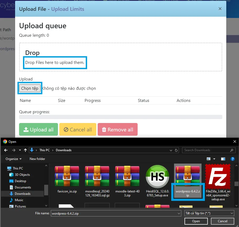 Lưu ý: Trong trường hợp bạn gặp vấn đề không upload được file, bạn có thể xem thêm và xử lý theo bài viết sau: 2 bước fix lỗi Can not be uploaded Error message CyberPanel.