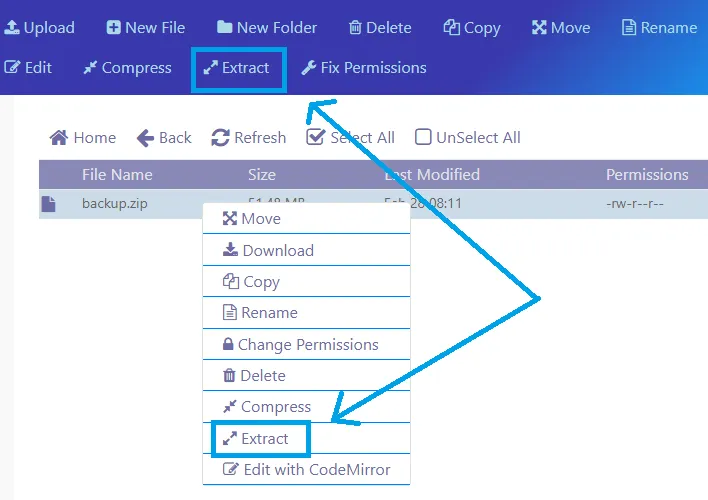 Trong tình huống bạn có file zip cần giải nén thì bạn có thể thực hiện theo 2 cách sau: Đầu tiên bạn chọn file nén cần sử dụng và sau đó bấm nút Extract hoặc bạn có thể nhấn chuột phải và chọn dòng Extract trong menu pop-up.