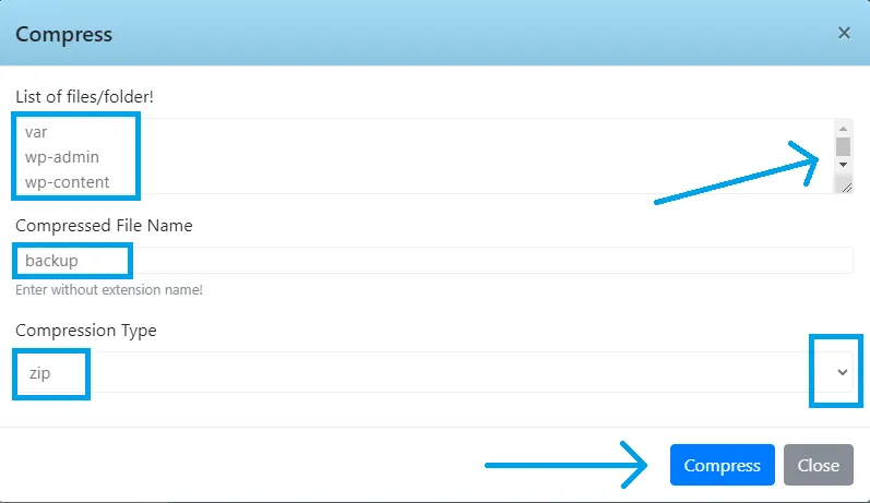 Giả định trên Cyber Panel bạn có một số folder, file cần truyền đi qua các nền tảng khác, cần sao lưu, cần download thì nén file/folder là một giải pháp rất hiệu quả. các dữ liệu sẽ được gói gọn, dễ kiểm soát, không bị phân mảnh, thiếu sót trong lúc thực thi các thao tác khác.