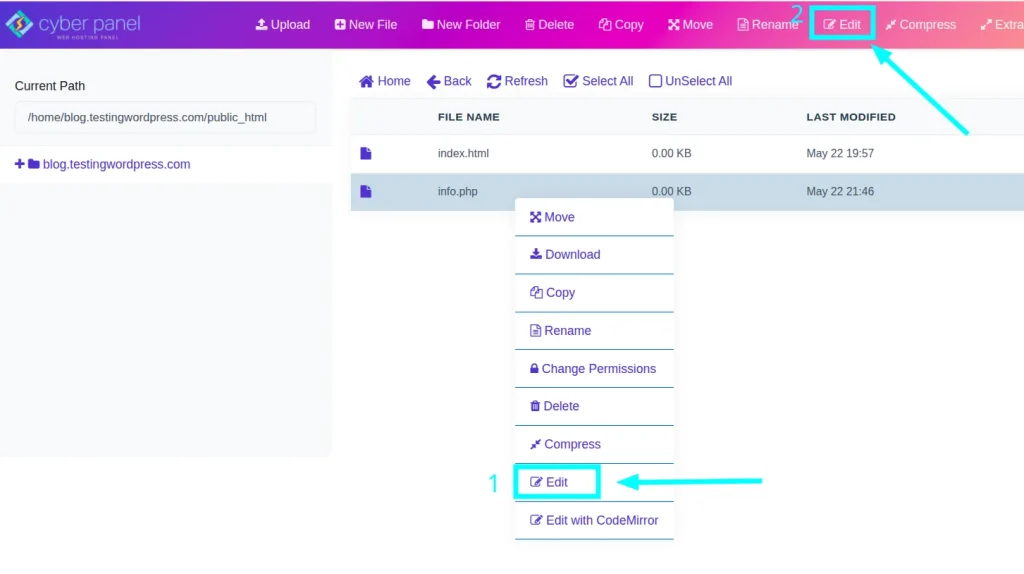- Nắm rõ vai trò của File Manager trên CyberPanel đó là giúp người dùng dễ dàng truy cập và quản lý file trên server.