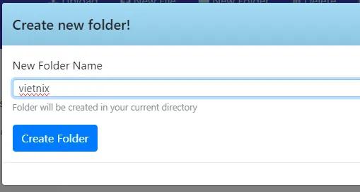 Sau khi truy cập vào File Manager thành công, bạn sẽ bắt đầu chọn mục New folder mới.