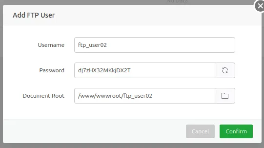 - Password: Mật khẩu của user FTP. (có thể nhập thủ công hoặc chọn tạo tự động).