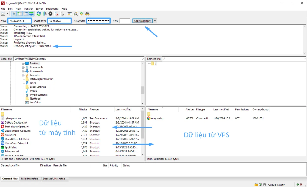 - Bước 2: Kết nối FTP với FileZilla