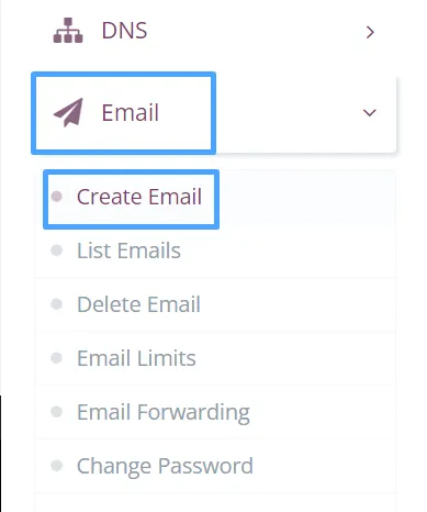 Tiếp theo tại dashboard của CyberPanel bạn chọn trên thanh menu bên trái mục Email và bấm vào nút Create Email.