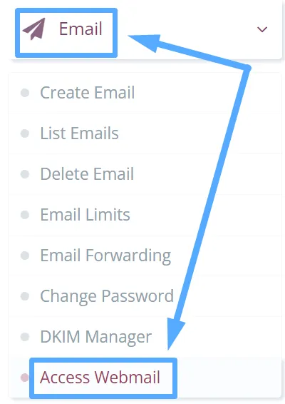 Bạn quay lại trang dashboard của CyberPanel, chọn Email và bấm Access Webmail.