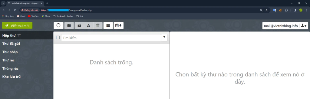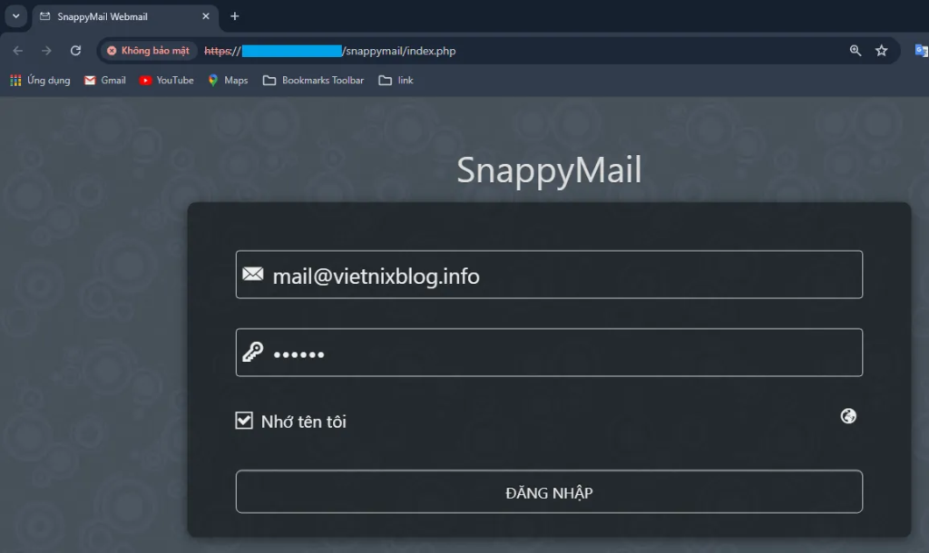 Tại đây, bạn sẽ vào giao diện đăng nhập SnappyMail, hãy đăng nhập với các thông tin bạn vừa tạo.