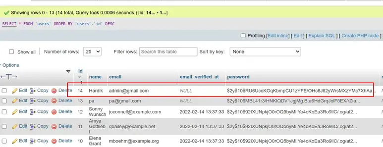 You can see one database row will be created on the user’s table: